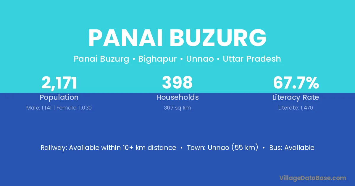 Unnao (55 km) is the nearest town to Panai Buzurg village for major economic activities and is located approximately 55 km away.