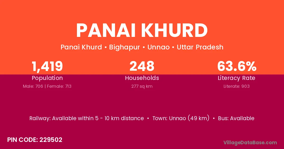 Unnao (49 km) is the nearest town to Panai Khurd village for major economic activities and is located approximately 49 km away.
