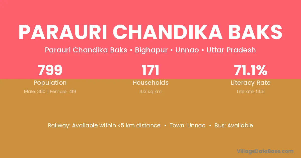 Parauri Chandika Baks village has a total population of 799 people, of which 380 are males and 419 are females.