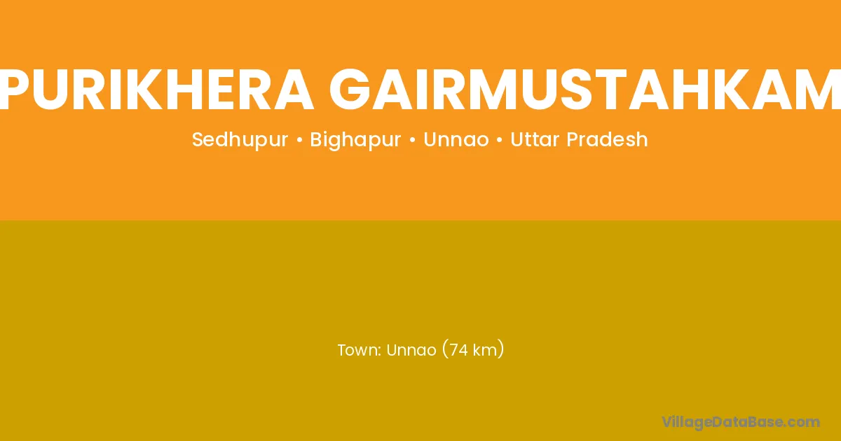 Unnao (74 km) is the nearest town to Purikhera Gairmustahkam village for major economic activities and is located approximately 74 km away.