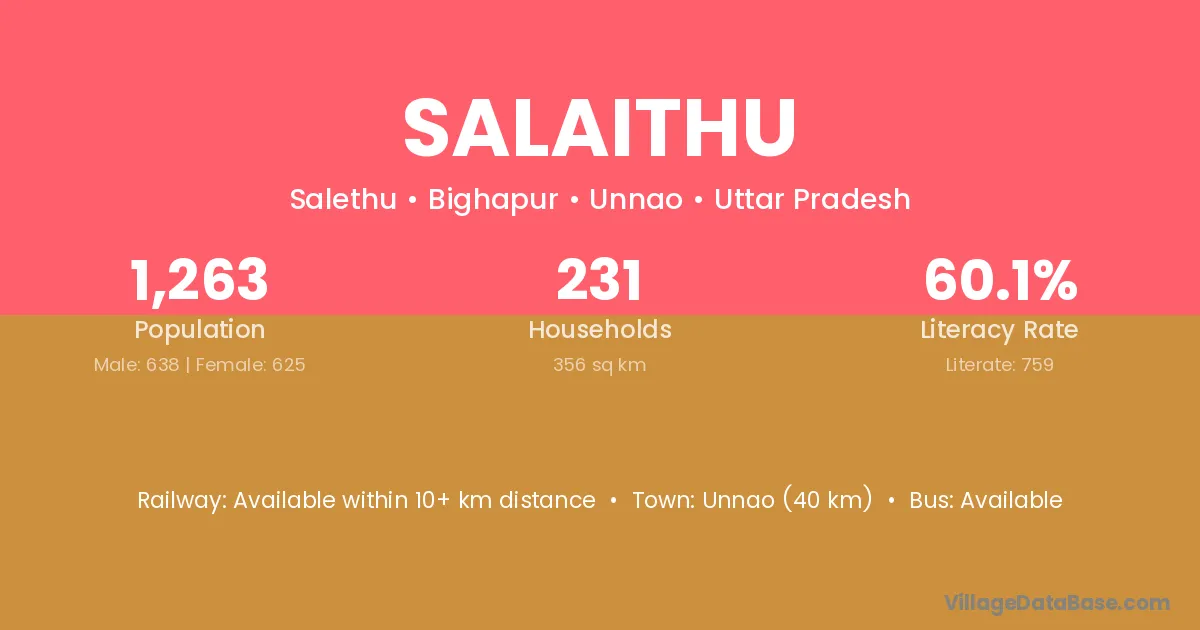 Unnao (40 km) is the nearest town to Salaithu village for major economic activities and is located approximately 40 km away.