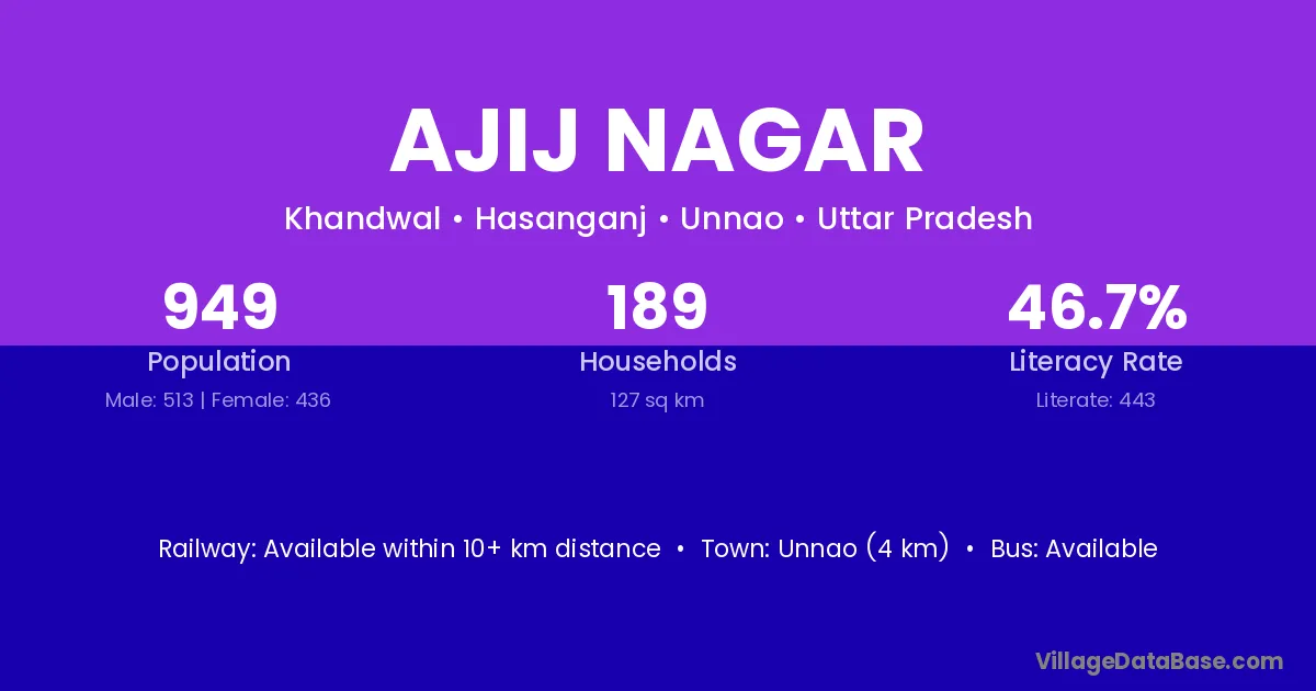 Unnao (4 km) is the nearest town to Ajij Nagar village for major economic activities and is located approximately 4 km away.