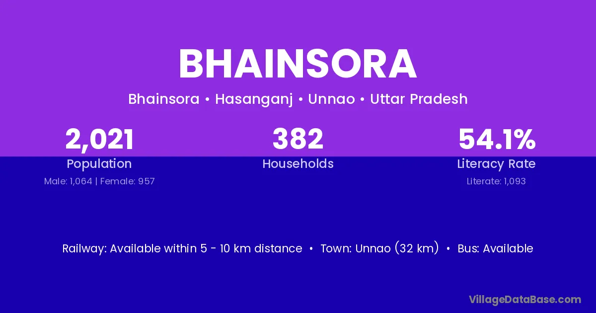 Unnao (32 km) is the nearest town to Bhainsora village for major economic activities and is located approximately 32 km away.
