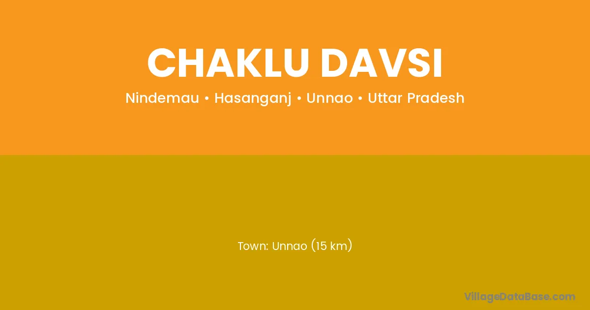 Unnao (15 km) is the nearest town to Chaklu Davsi village for major economic activities and is located approximately 15 km away.