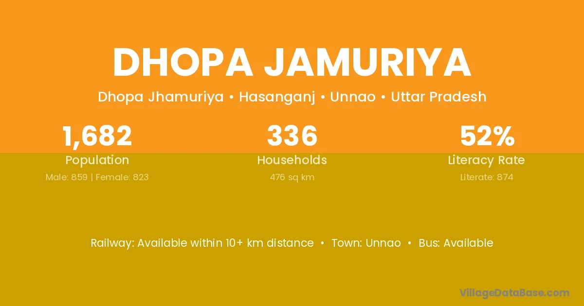 Dhopa Jamuriya village has a total population of 1,682 people, of which 859 are males and 823 are females.