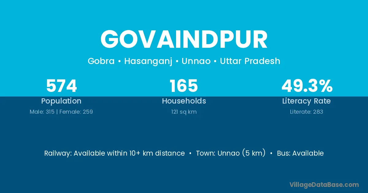 Unnao (5 km) is the nearest town to Govaindpur village for major economic activities and is located approximately 5 km away.
