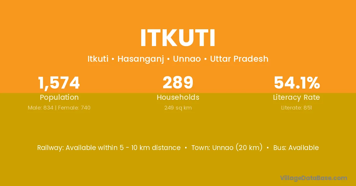 Unnao (20 km) is the nearest town to Itkuti village for major economic activities and is located approximately 20 km away.