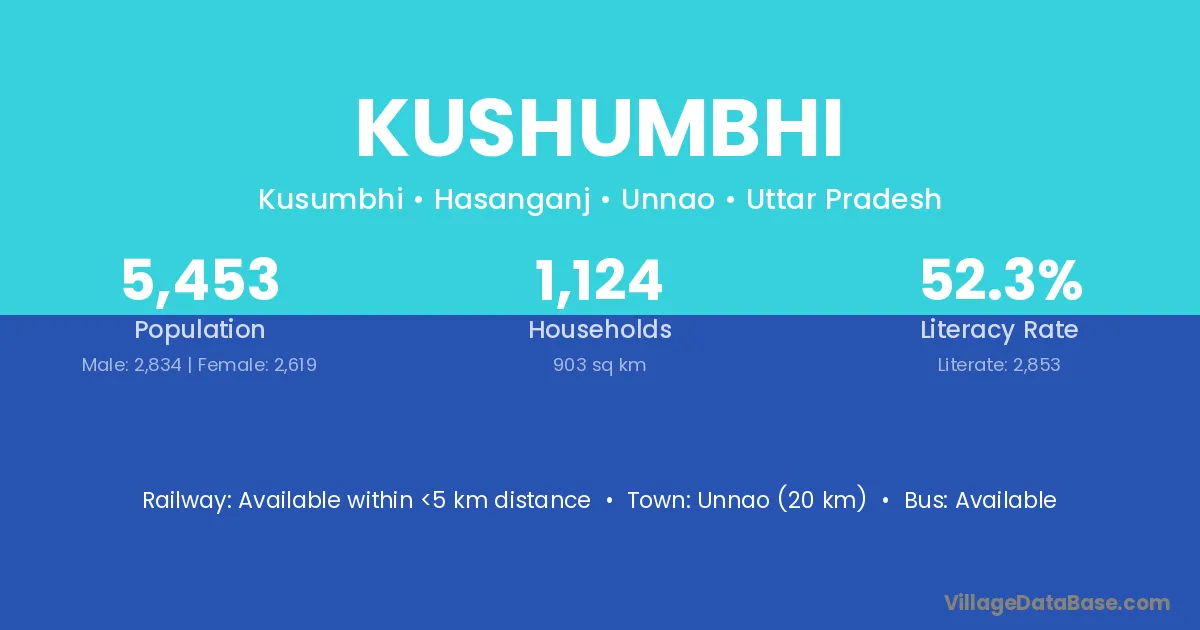 Unnao (20 km) is the nearest town to Kushumbhi village for major economic activities and is located approximately 20 km away.
