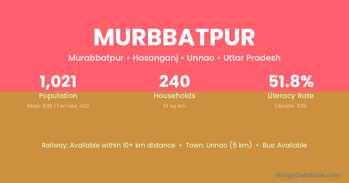 Unnao (5 km) is the nearest town to Murbbatpur village for major economic activities and is located approximately 5 km away.