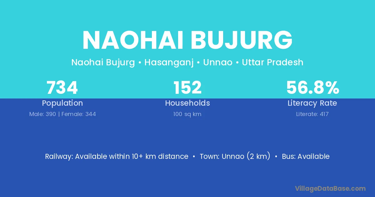 Unnao (2 km) is the nearest town to Naohai Bujurg village for major economic activities and is located approximately 2 km away.