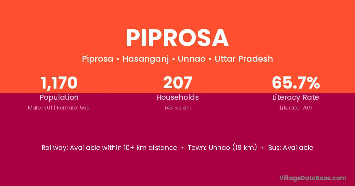 Unnao (18 km) is the nearest town to Piprosa village for major economic activities and is located approximately 18 km away.