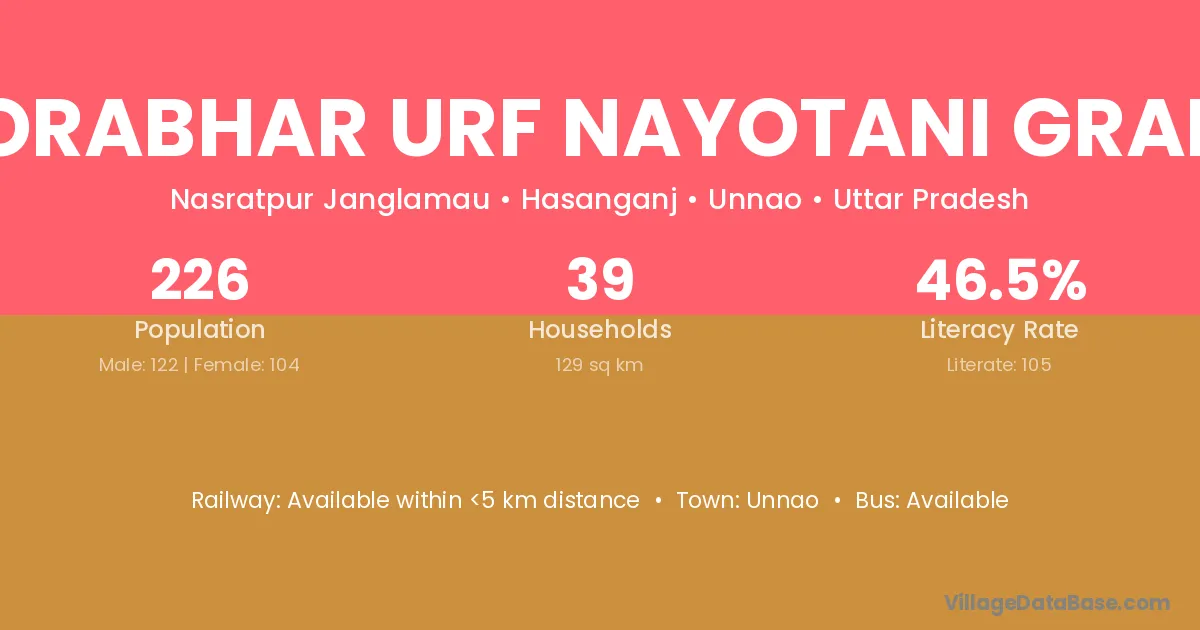 Poorabhar Urf Nayotani Gramin village has a total population of 226 people, of which 122 are males and 104 are females.