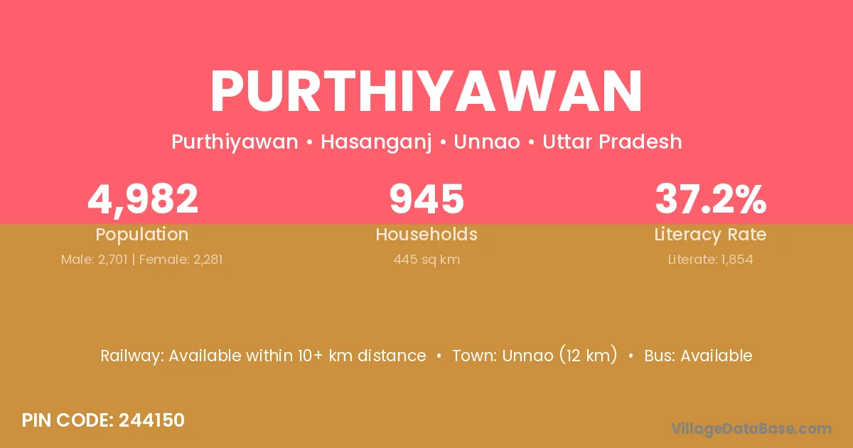 Unnao (12 km) is the nearest town to Purthiyawan village for major economic activities and is located approximately 12 km away.