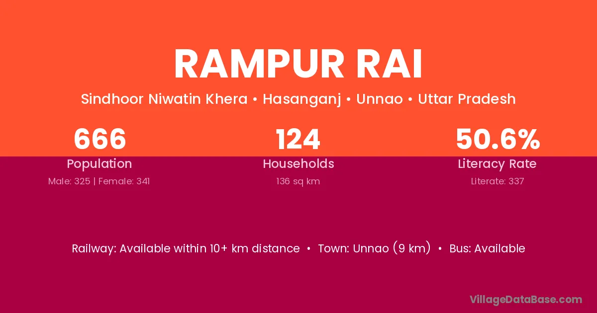 Unnao (9 km) is the nearest town to Rampur Rai village for major economic activities and is located approximately 9 km away.