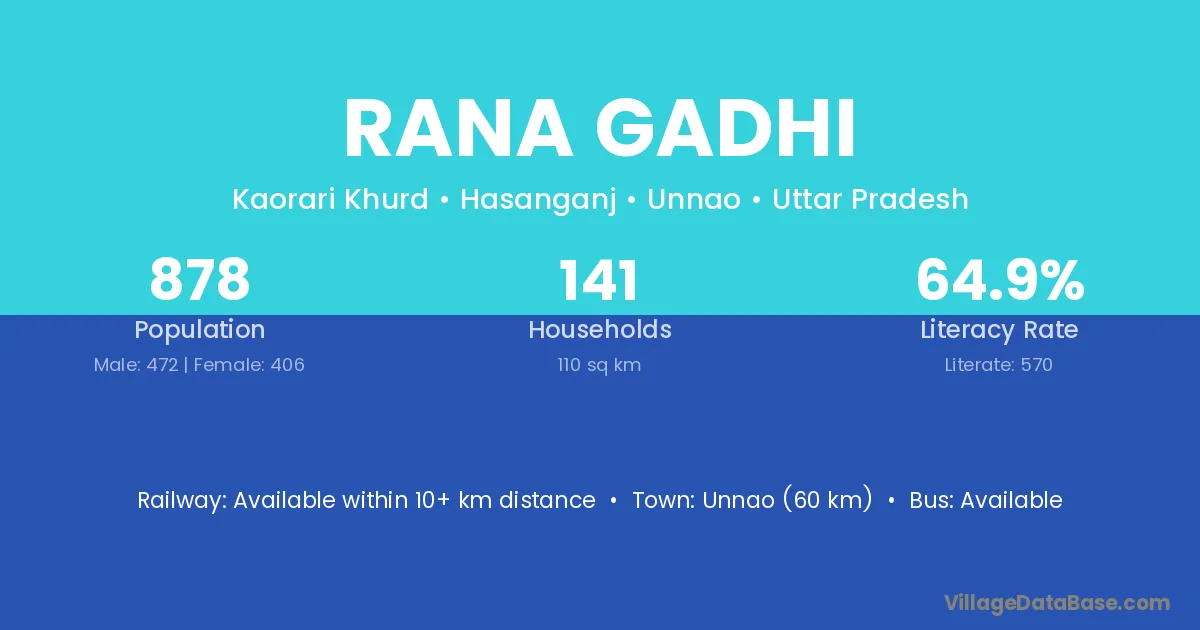 Unnao (60 km) is the nearest town to Rana Gadhi village for major economic activities and is located approximately 60 km away.