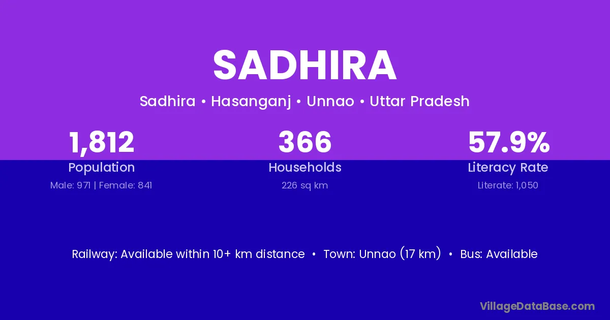 Unnao (17 km) is the nearest town to Sadhira village for major economic activities and is located approximately 17 km away.