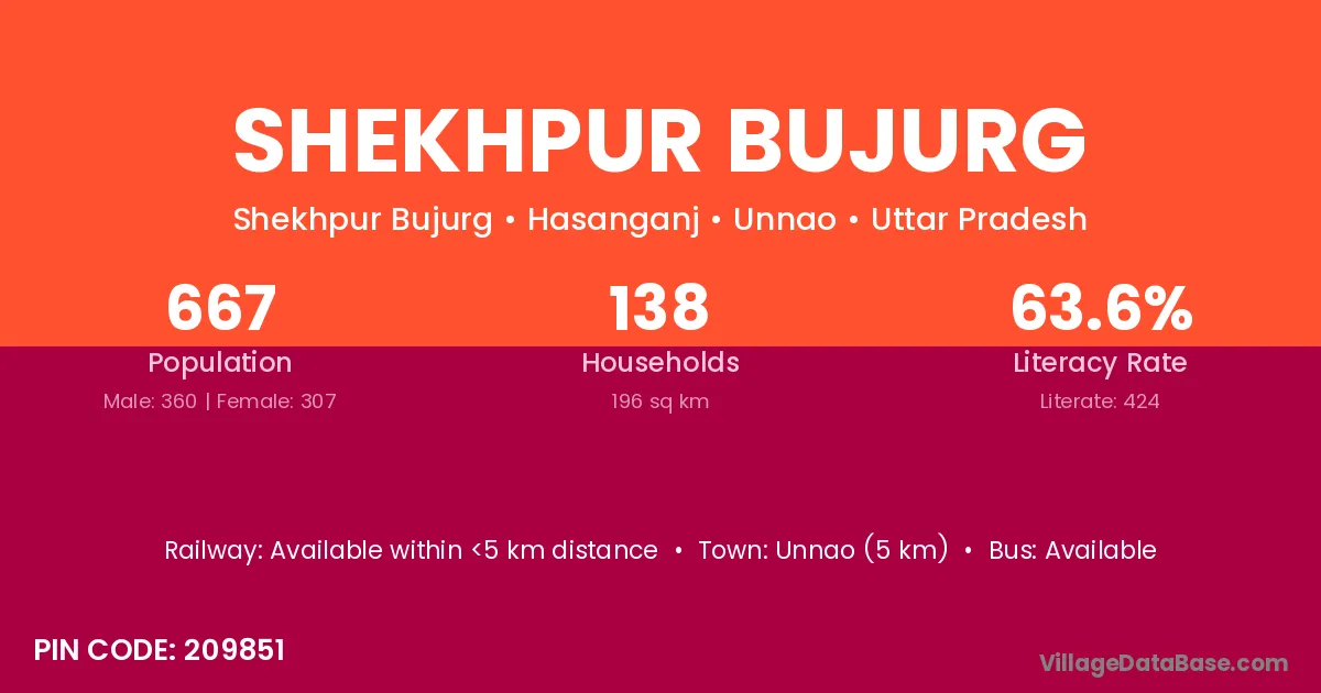 Unnao (5 km) is the nearest town to Shekhpur Bujurg village for major economic activities and is located approximately 5 km away.