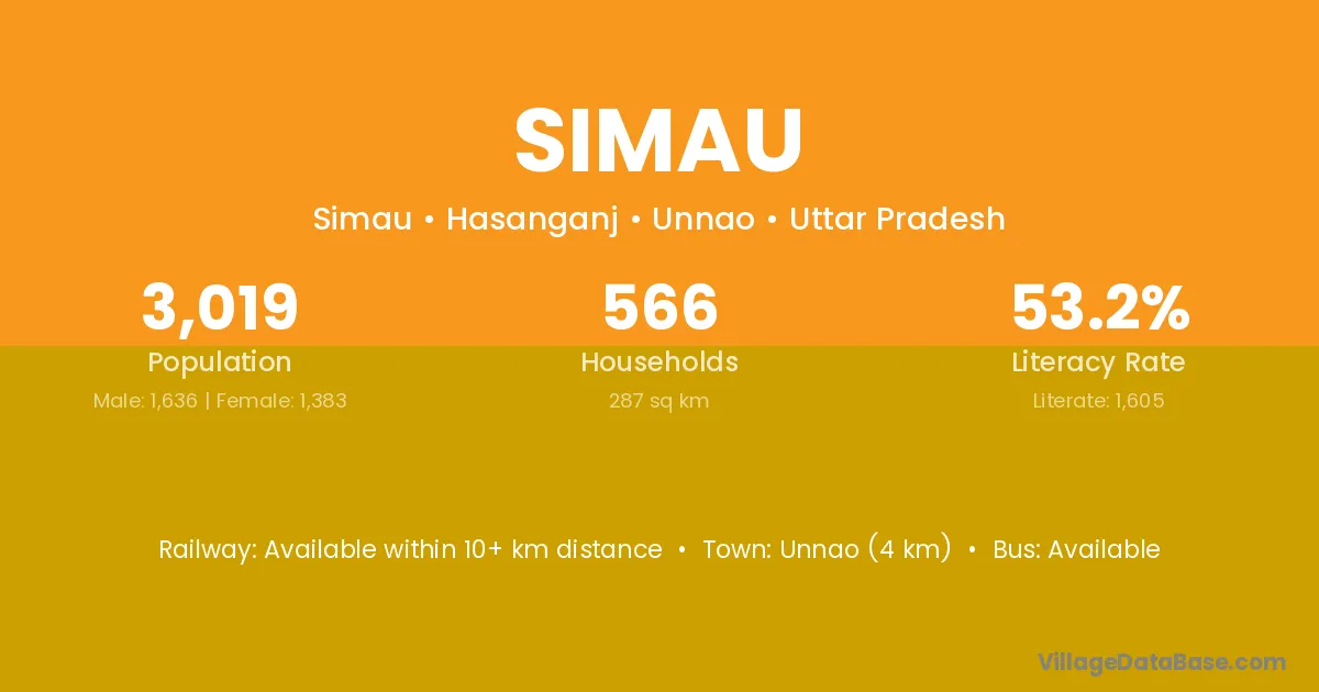 Unnao (4 km) is the nearest town to Simau village for major economic activities and is located approximately 4 km away.