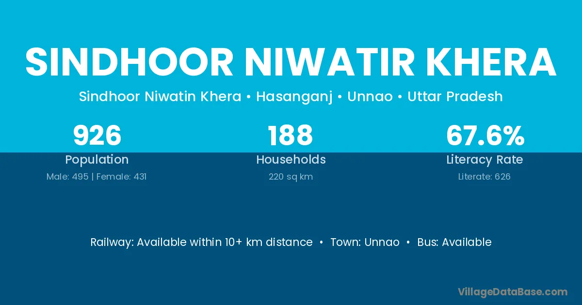 Unnao is the nearest town to Sindhoor Niwatir Khera village for major economic activities