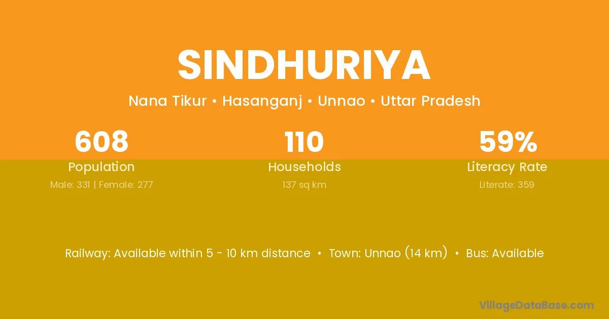 Unnao (14 km) is the nearest town to Sindhuriya village for major economic activities and is located approximately 14 km away.