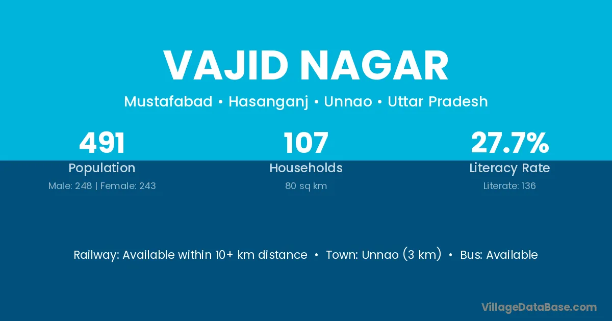 Unnao (3 km) is the nearest town to Vajid Nagar village for major economic activities and is located approximately 3 km away.