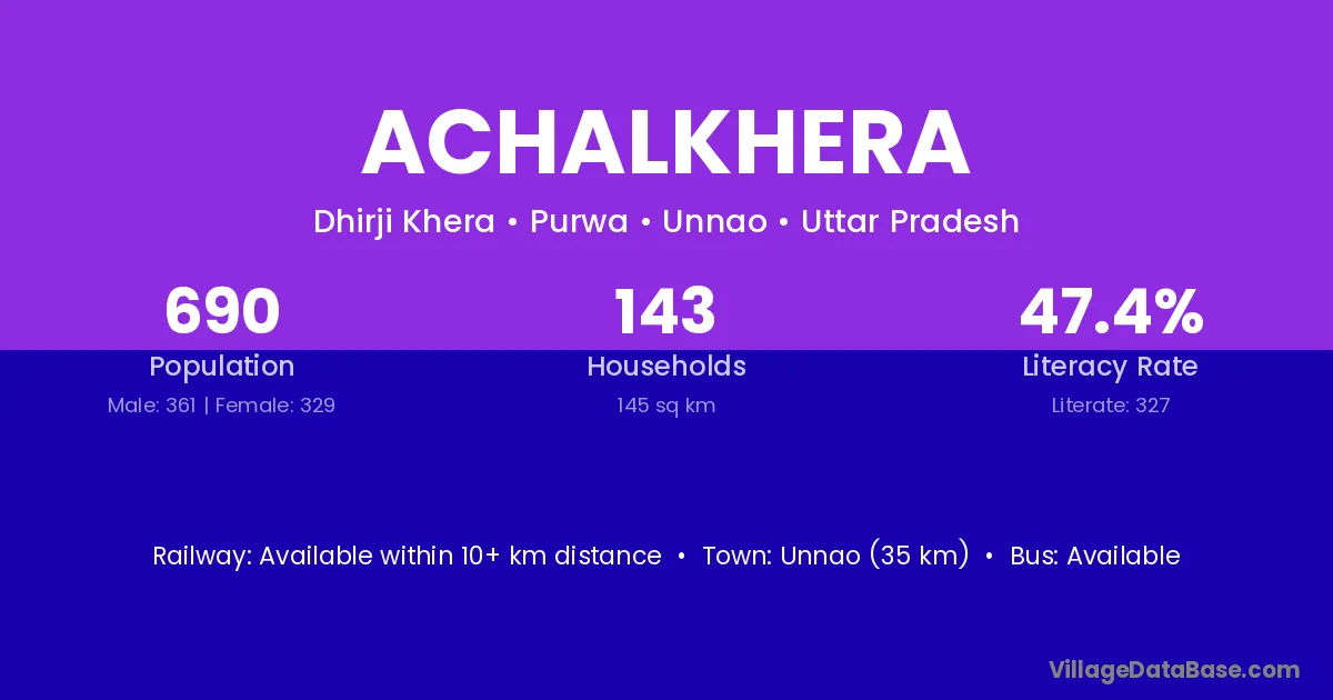 Unnao (35 km) is the nearest town to Achalkhera village for major economic activities and is located approximately 35 km away.