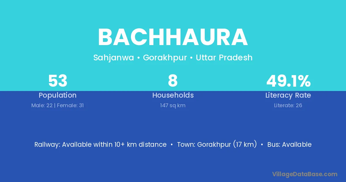 The literacy rate of Bachhaura village is 60.93%. Male literacy stands at 69.88% and female literacy at 50.88%.