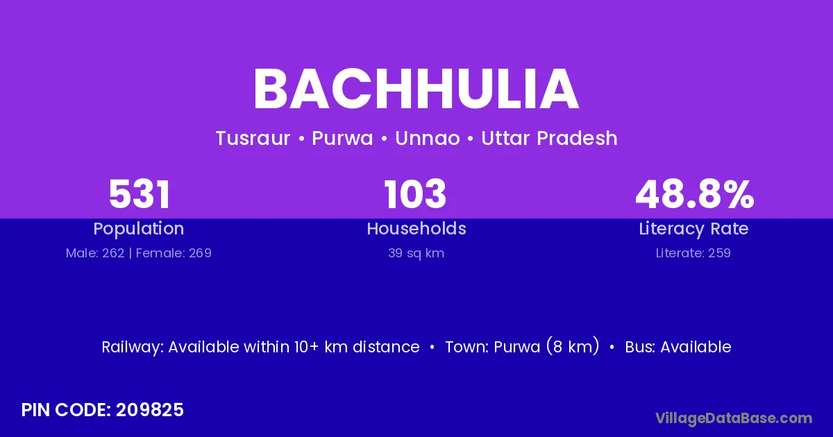 Purwa (8 km) is the nearest town to Bachhulia village for major economic activities and is located approximately 8 km away.