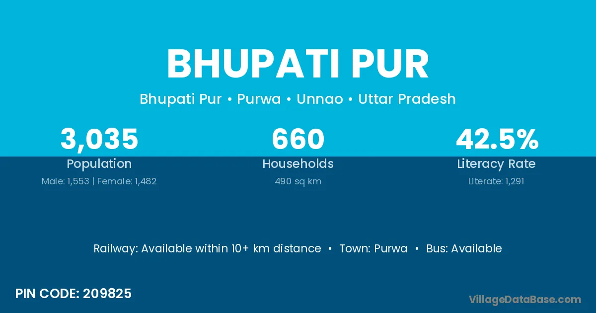 Bhupati Pur village has a total population of 3,035 people, of which 1,553 are males and 1,482 are females.