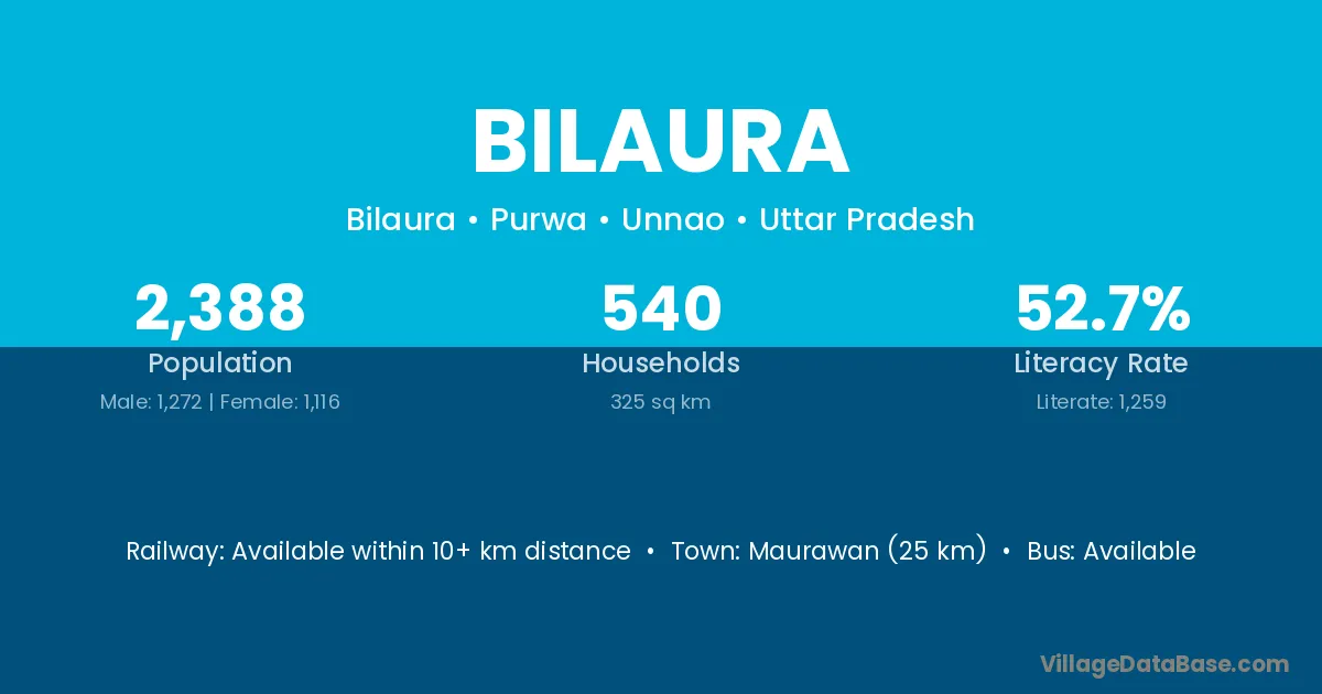 Maurawan (25 km) is the nearest town to Bilaura village for major economic activities and is located approximately 25 km away.