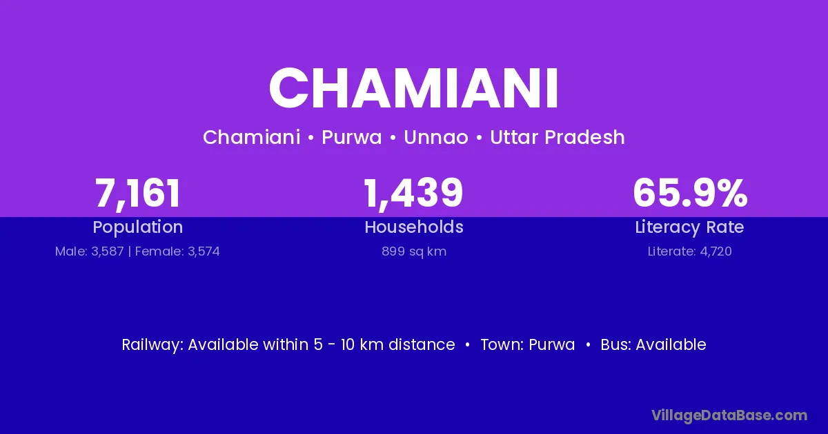 Purwa is the nearest town to Chamiani village for major economic activities