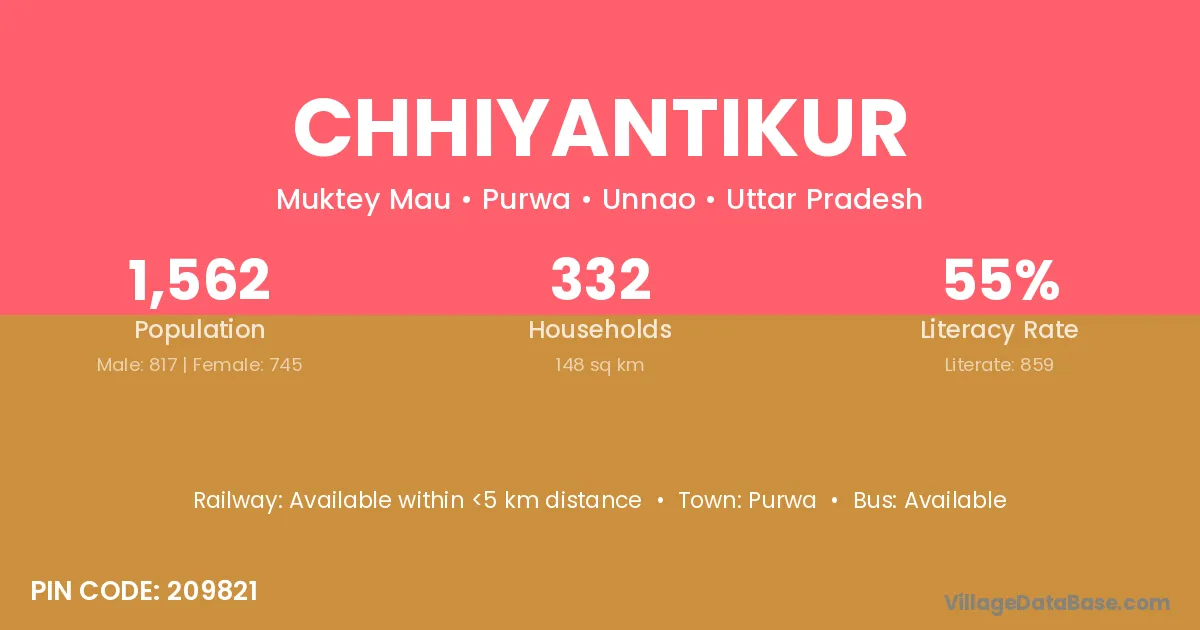 Purwa is the nearest town to Chhiyantikur village for major economic activities