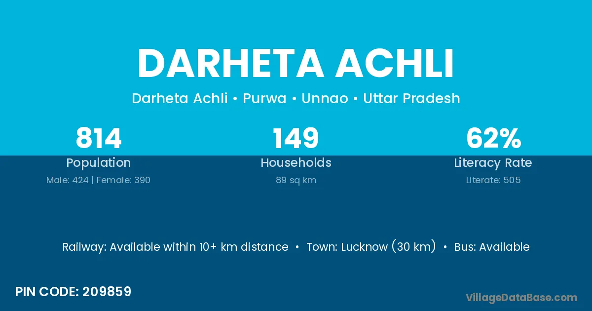 Lucknow (30 km) is the nearest town to Darheta Achli village for major economic activities and is located approximately 30 km away.