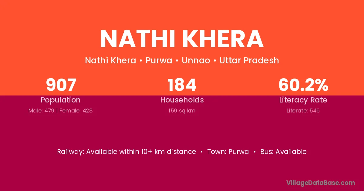 Nathi Khera village has a total population of 907 people, of which 479 are males and 428 are females.