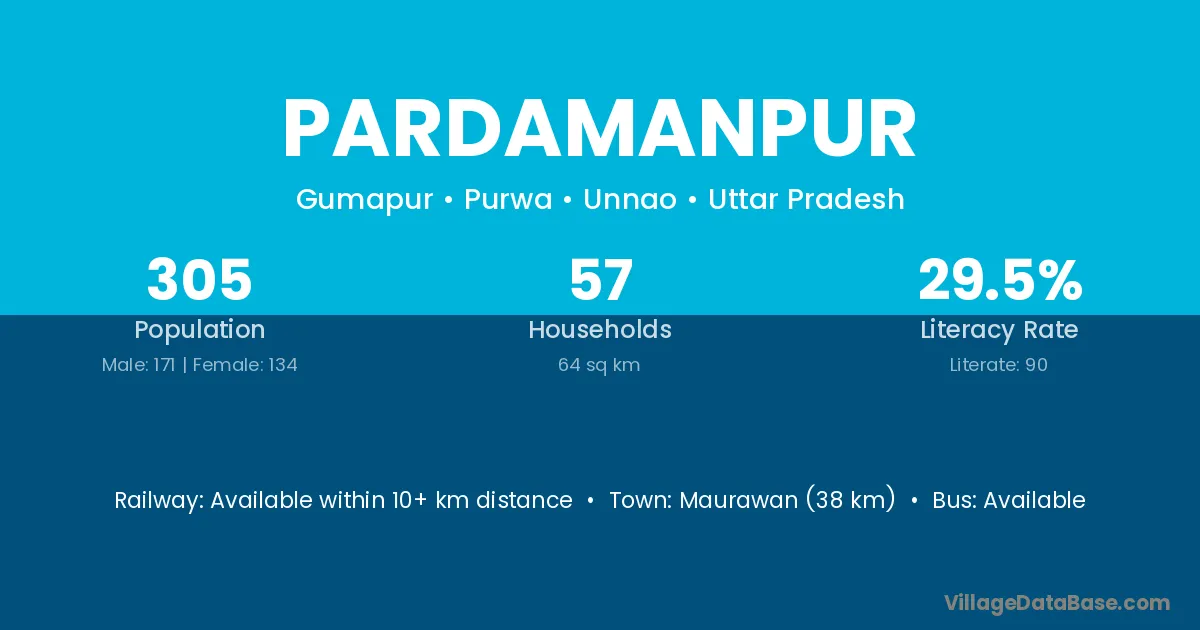 Maurawan (38 km) is the nearest town to Pardamanpur village for major economic activities and is located approximately 38 km away.
