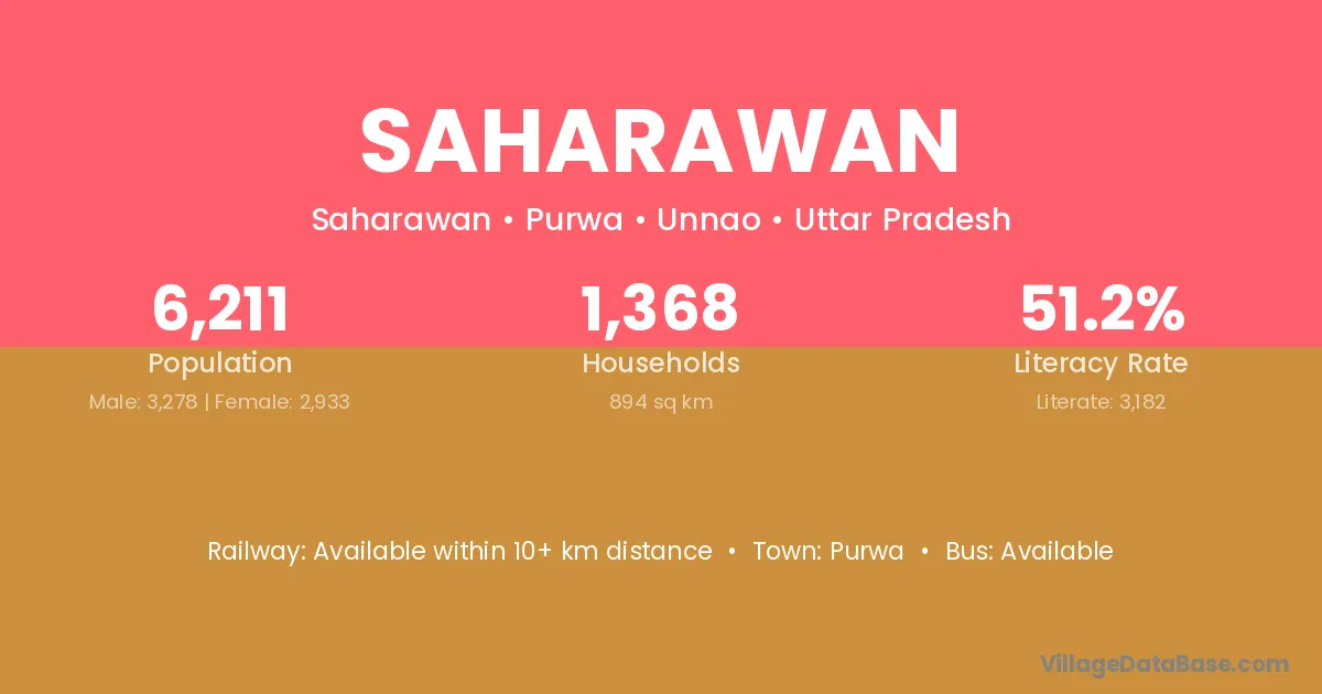 Saharawan village has a total population of 6,211 people, of which 3,278 are males and 2,933 are females.
