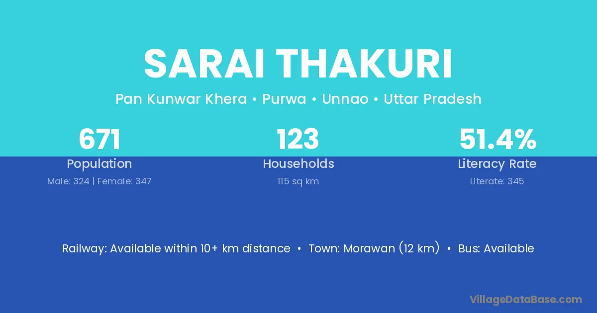 Sarai Thakuri village has a total population of 671 people, of which 324 are males and 347 are females.