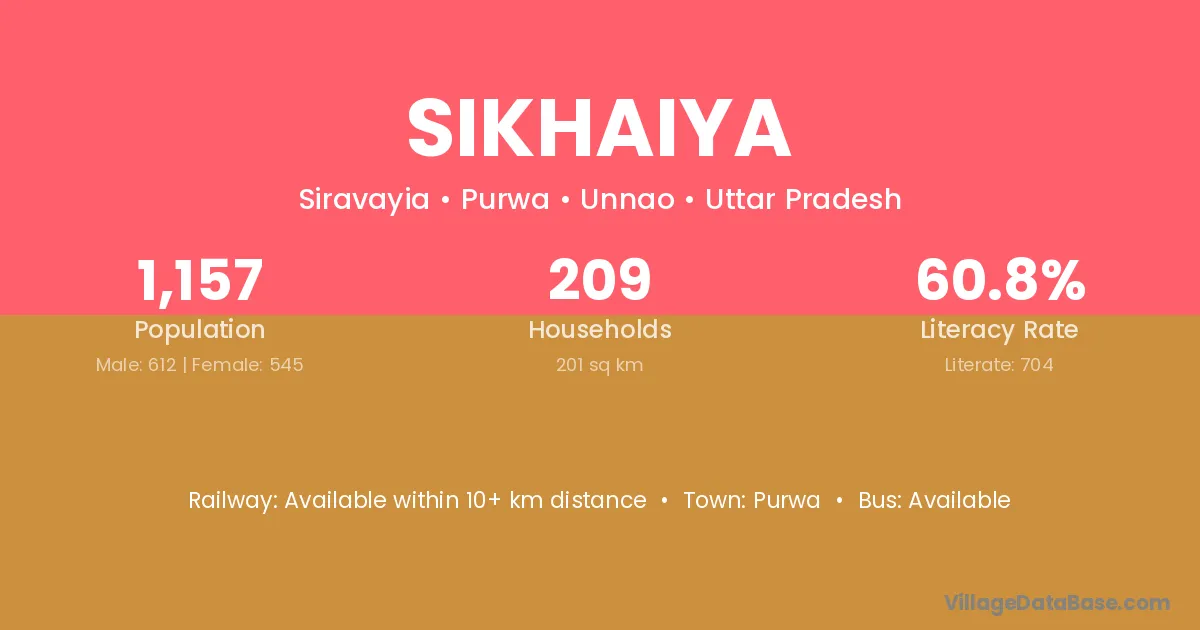 Sikhaiya village has a total population of 1,157 people, of which 612 are males and 545 are females.