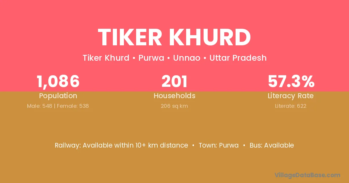 Tiker Khurd village has a total population of 1,086 people, of which 548 are males and 538 are females.