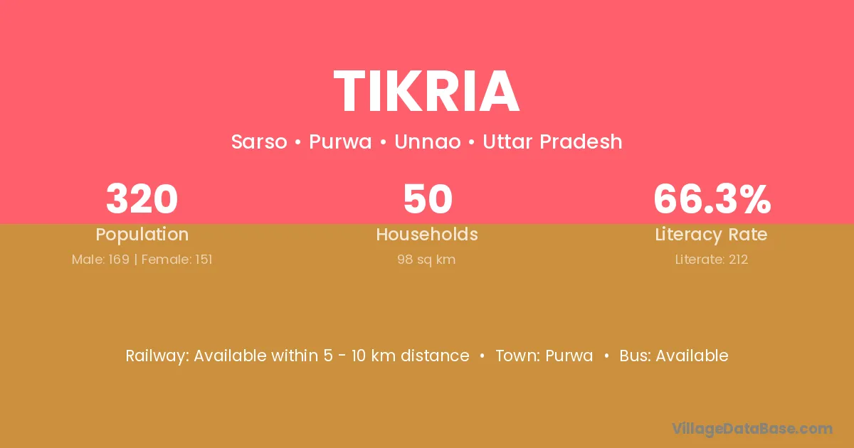 Tikria village has a total population of 320 people, of which 169 are males and 151 are females.