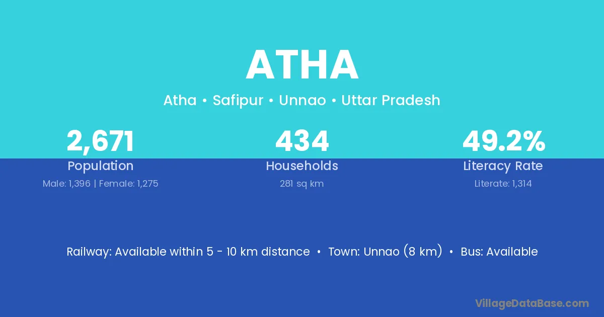 Unnao (8 km) is the nearest town to Atha village for major economic activities and is located approximately 8 km away.