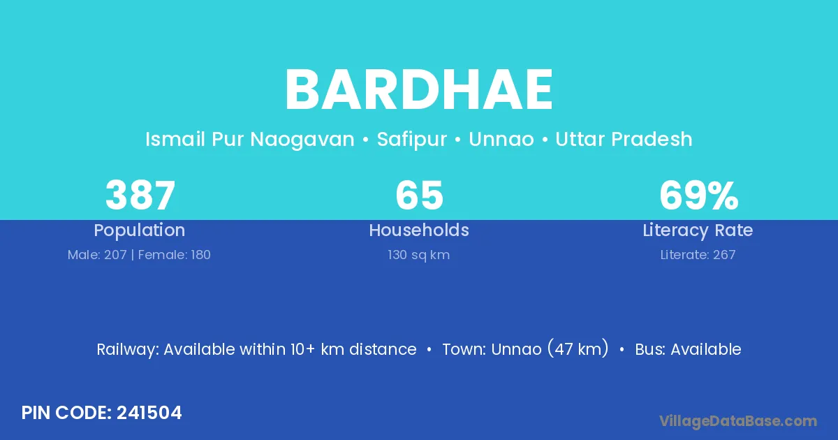 Unnao (47 km) is the nearest town to Bardhae village for major economic activities and is located approximately 47 km away.