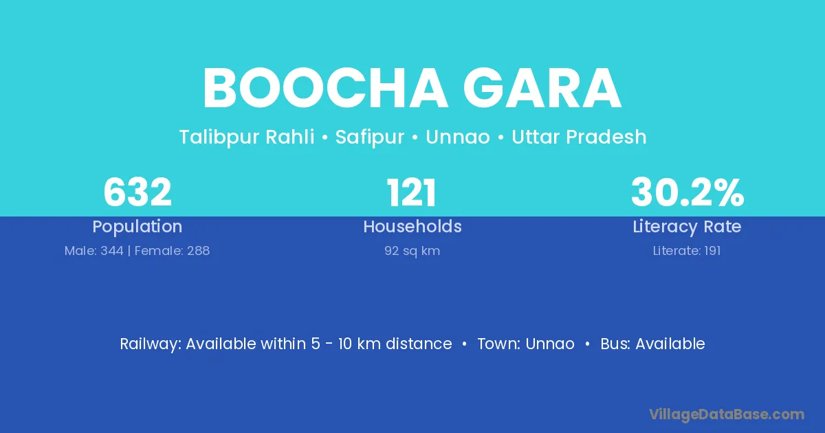 Unnao is the nearest town to Boocha Gara village for major economic activities