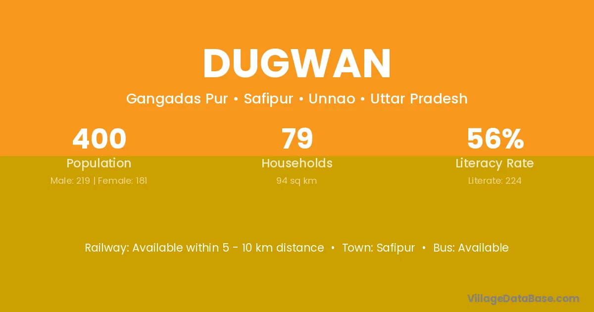 Dugwan village has a total population of 400 people, of which 219 are males and 181 are females.