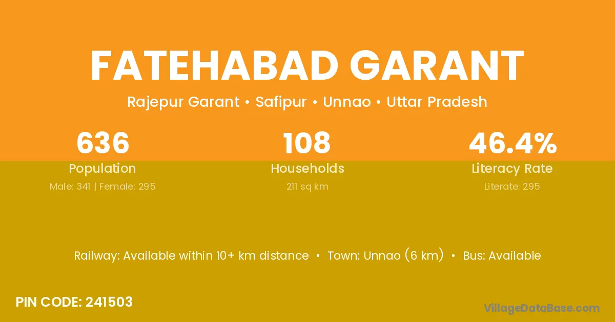 Unnao (6 km) is the nearest town to Fatehabad Garant village for major economic activities and is located approximately 6 km away.