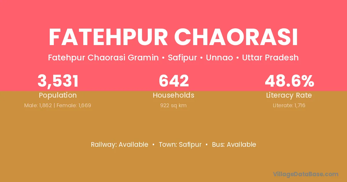 Fatehpur Chaorasi village has a total population of 3,531 people, of which 1,862 are males and 1,669 are females.