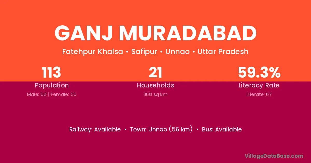 Ganj Muradabad village has a total population of 113 people, of which 58 are males and 55 are females.