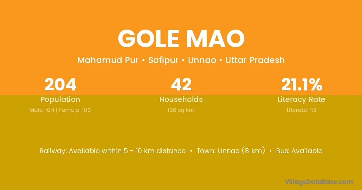 Unnao (8 km) is the nearest town to Gole Mao village for major economic activities and is located approximately 8 km away.