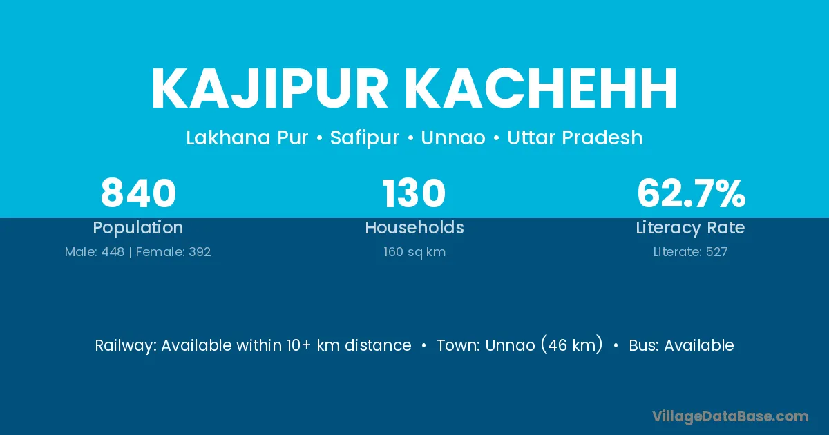 Unnao (46 km) is the nearest town to Kajipur Kachehh village for major economic activities and is located approximately 46 km away.
