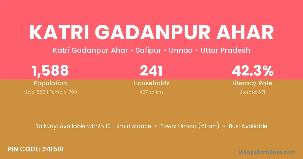 According to Census 2011 information, the village code of Katri Gadanpur Ahar village is 241501.
